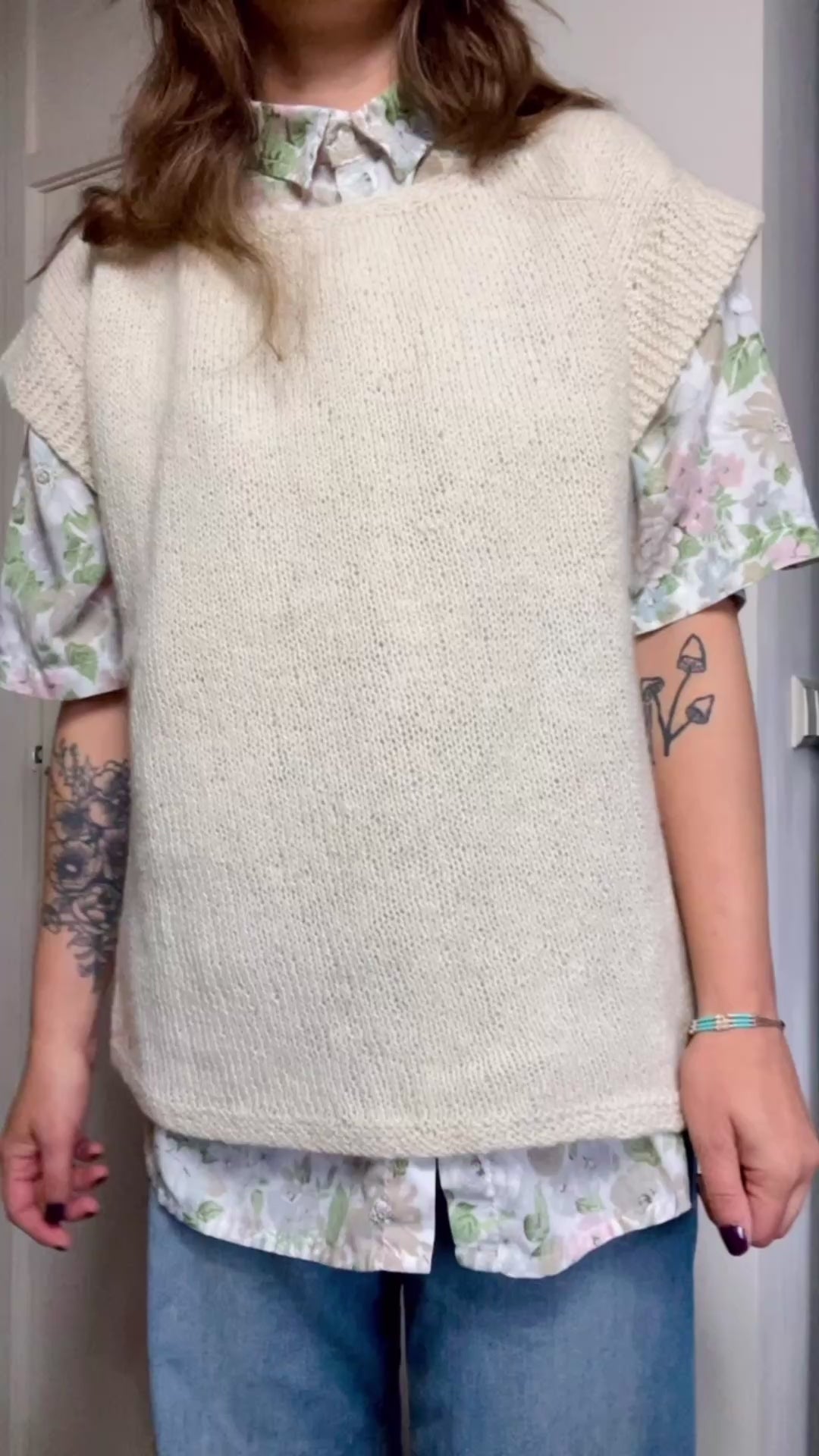 Beautiful cream hand knitted top. Warm, cosy and comfy. Prefect to layer over a cute shirt.