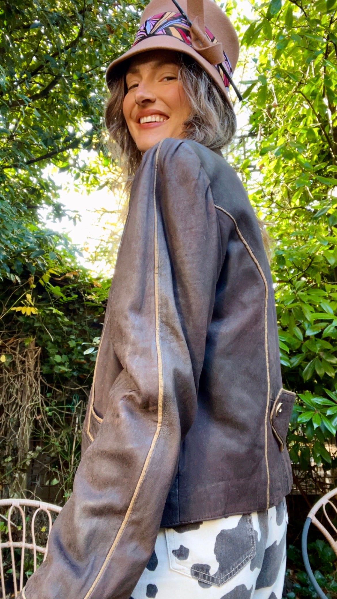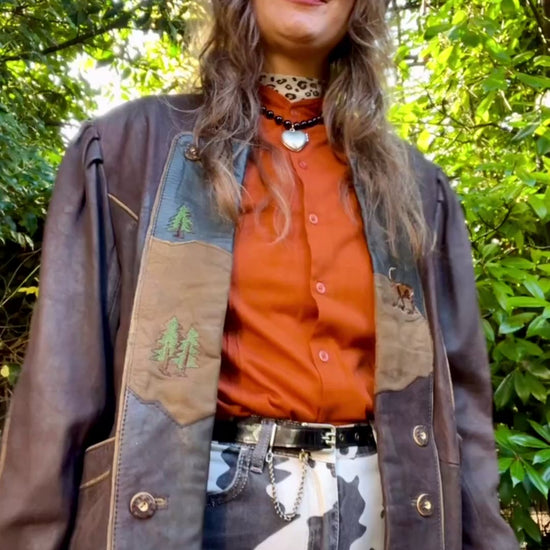 Super soft leather Austrian folklore jacket. Little embroidery on the lapels. The leather is in a very good condition. Satin lined. Closes with a little string and button.