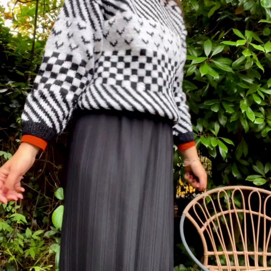 Cute black pleated skirt. Elastic waist band for comfort and easy fit.