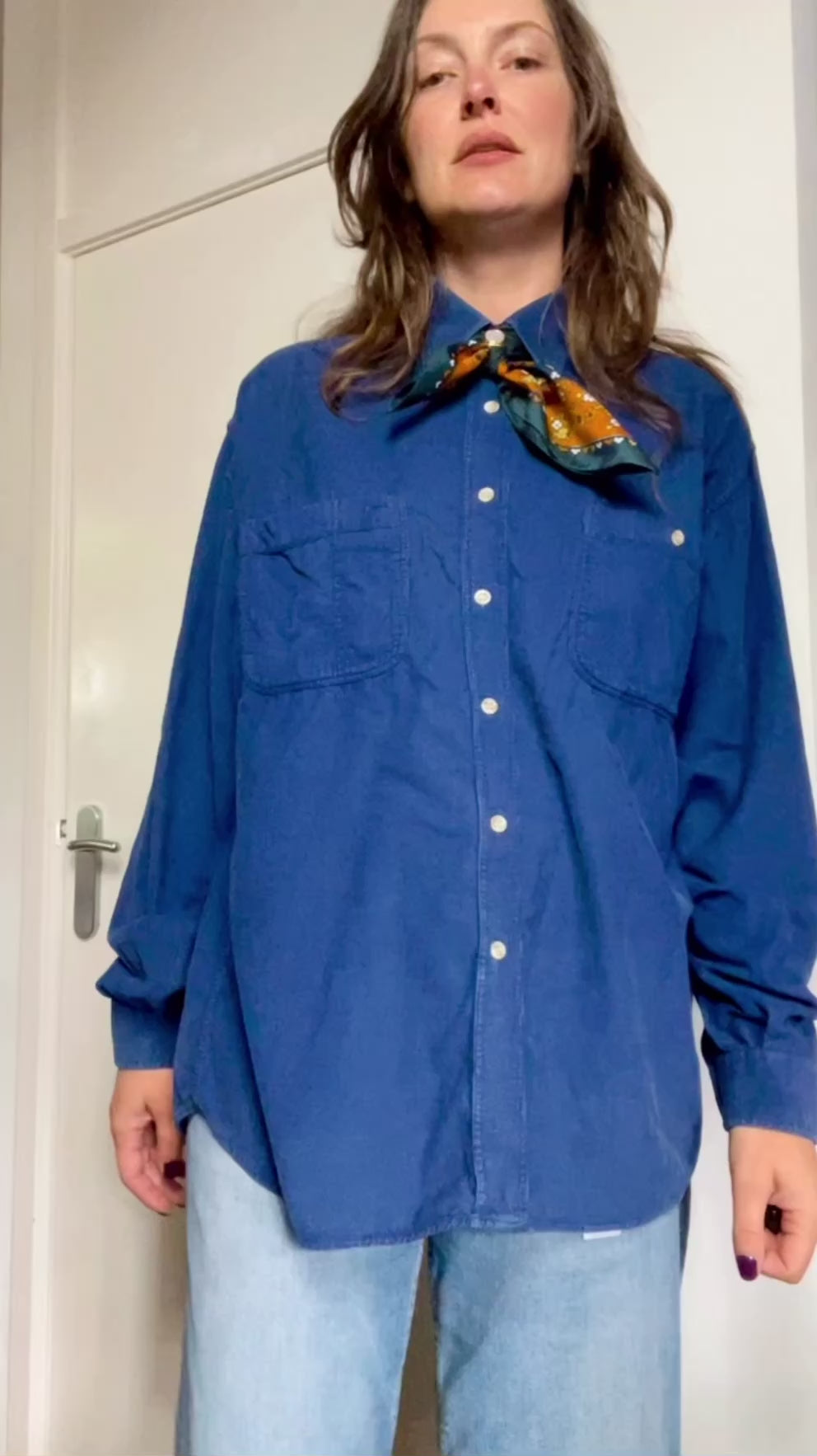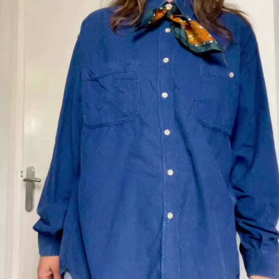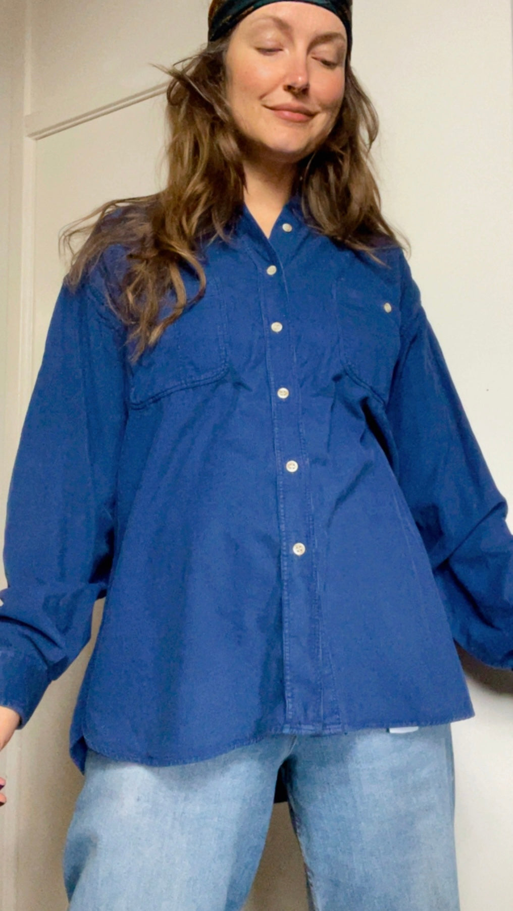 Super cool workwear style button down shirt in corduroy. Jeans blue, a perfect companion with your favorite pair.