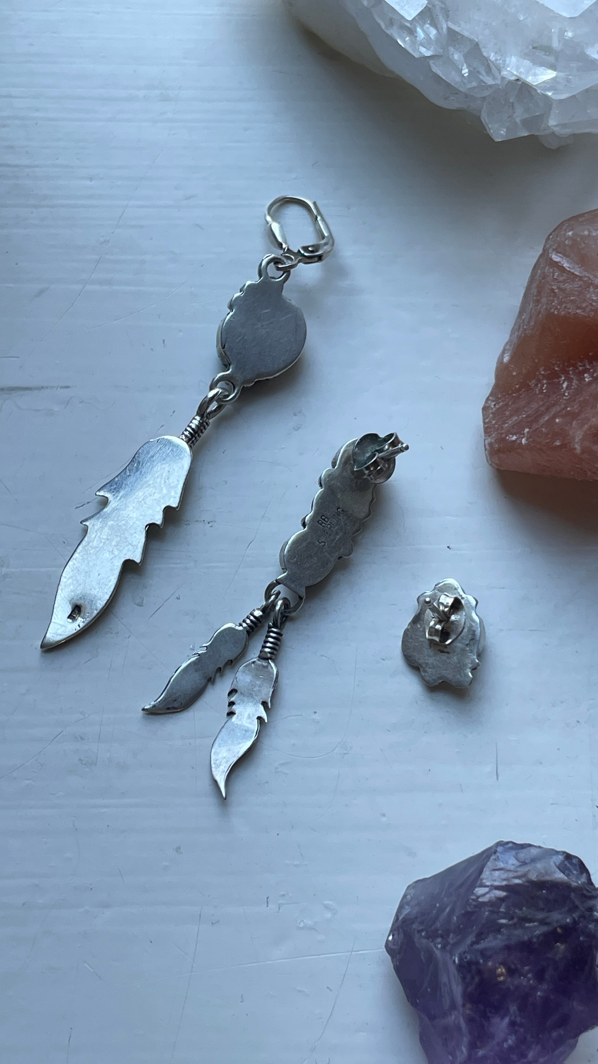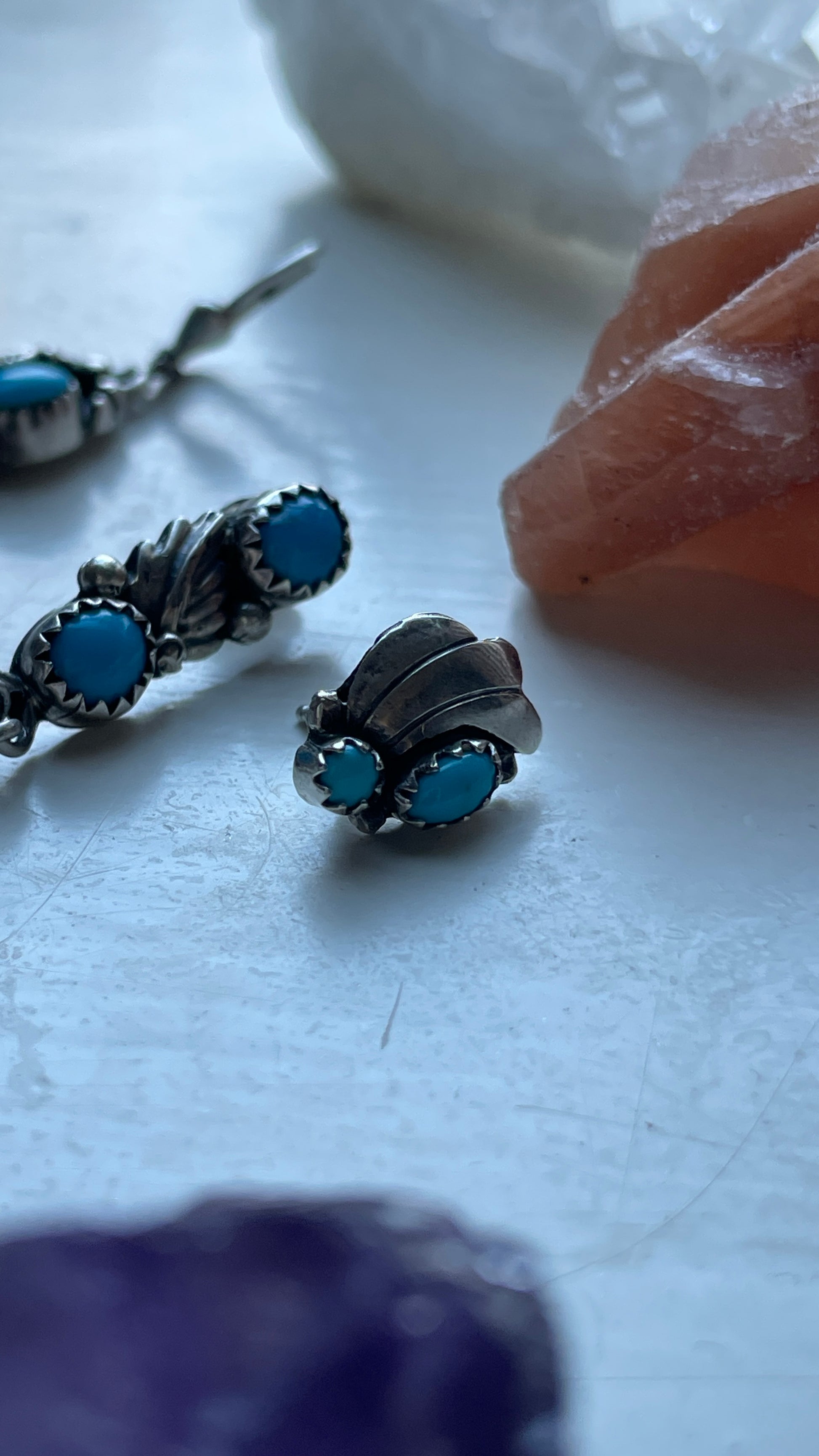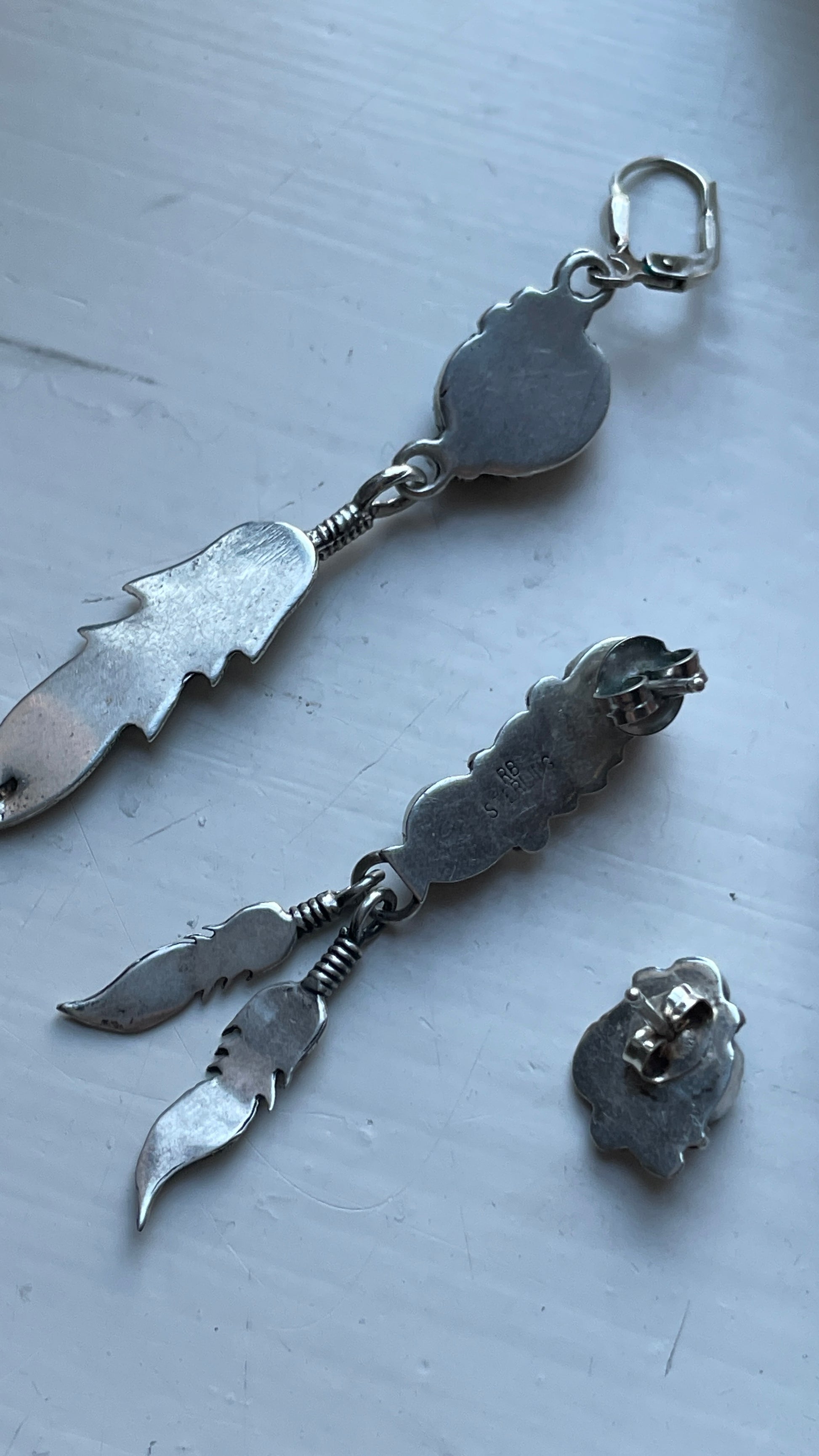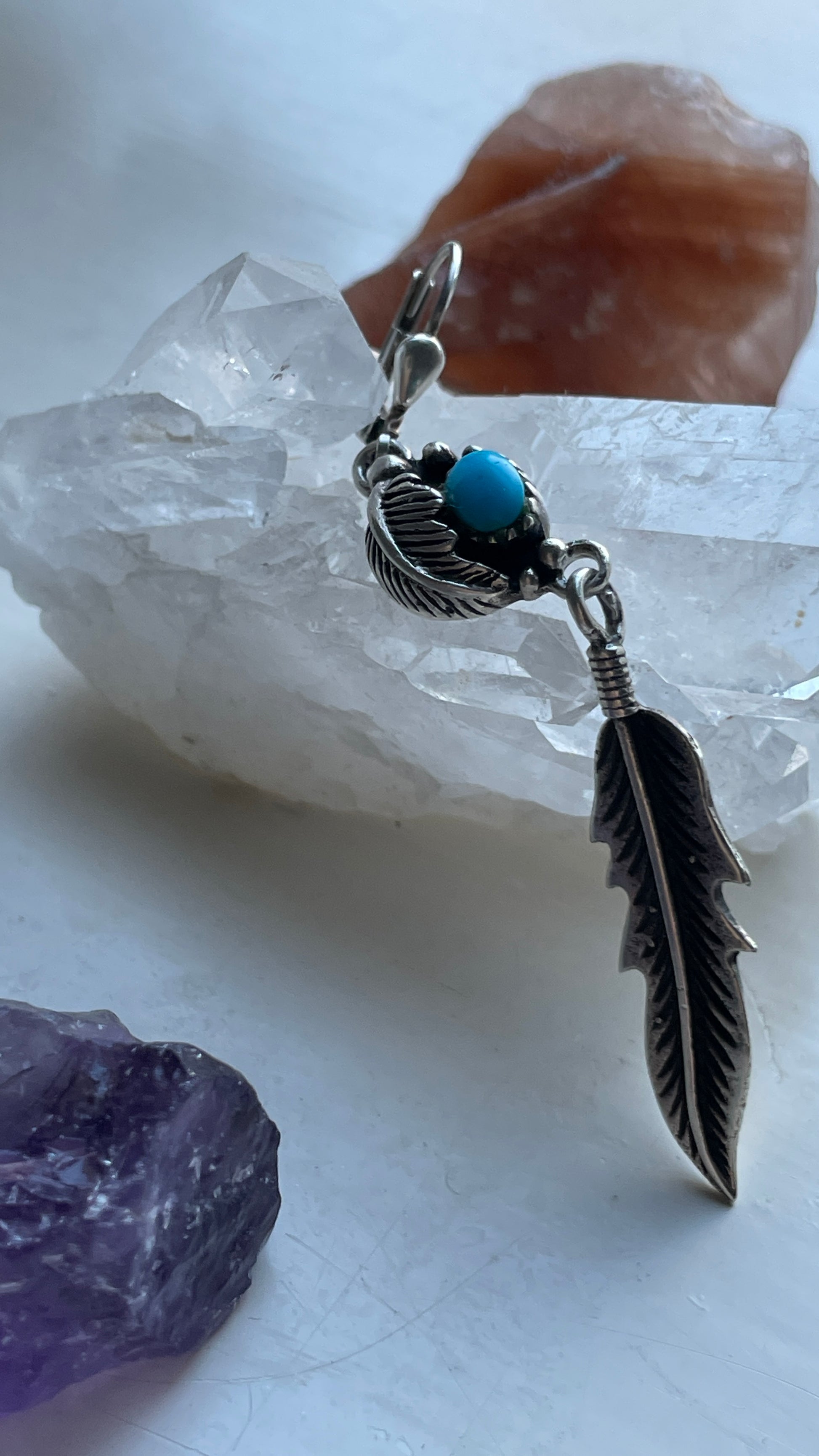 Beautiful feathery earring to mix and match. Sterling silver and decorated with turquoise.