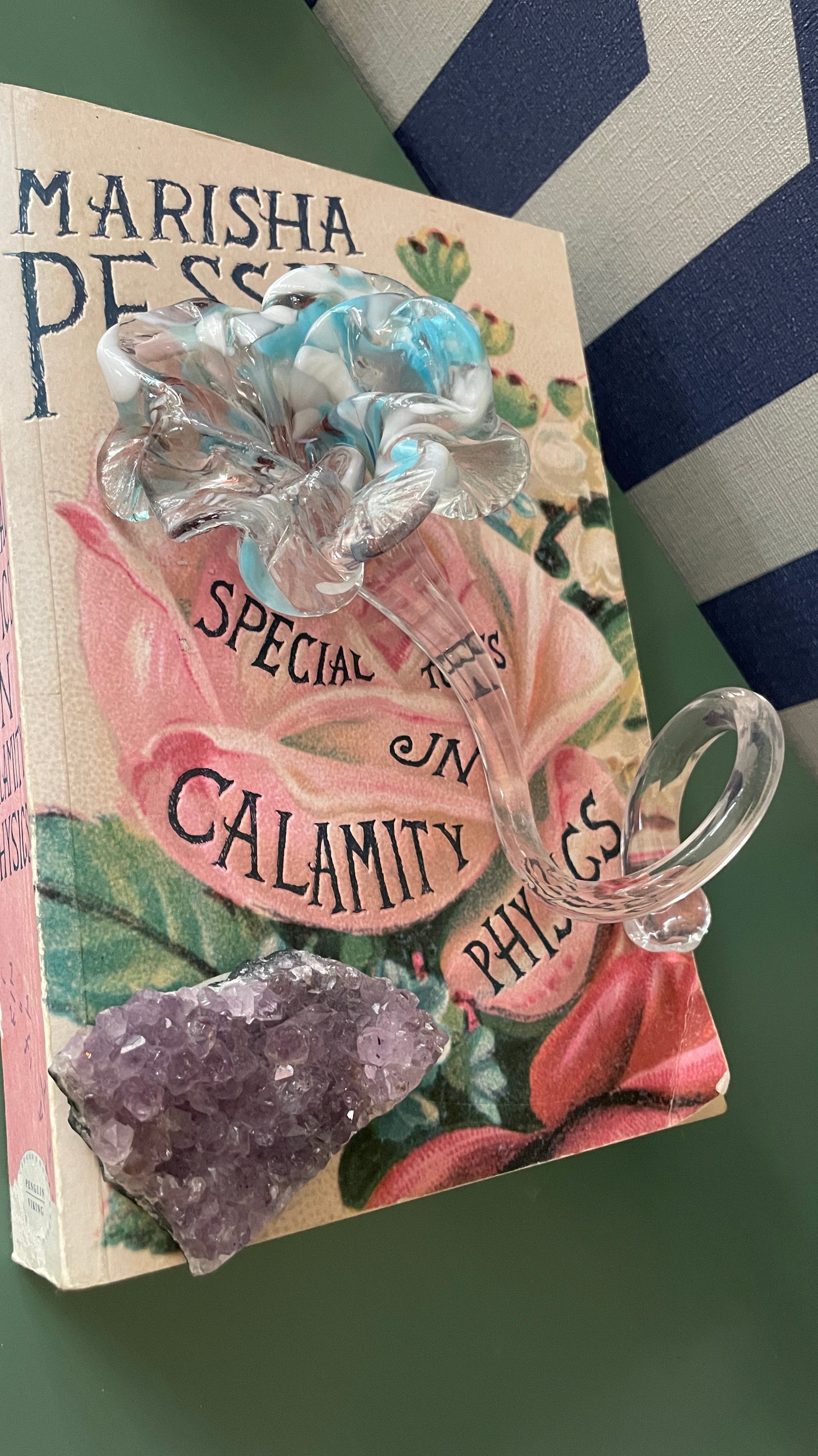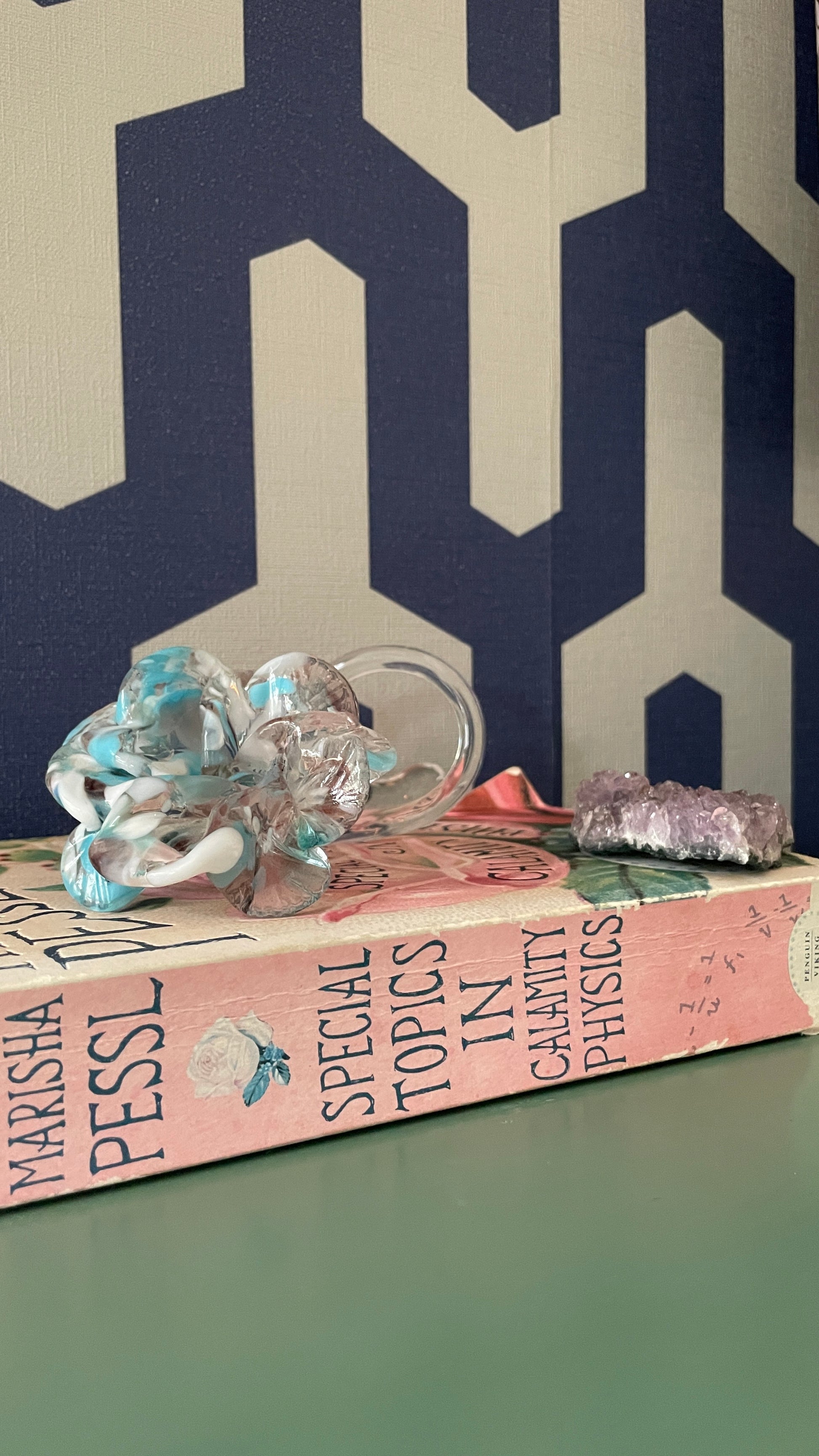 Stunning Murano style glass flower, a beautiful decor piece of paper weight. Handblown and unique. No makers mark.