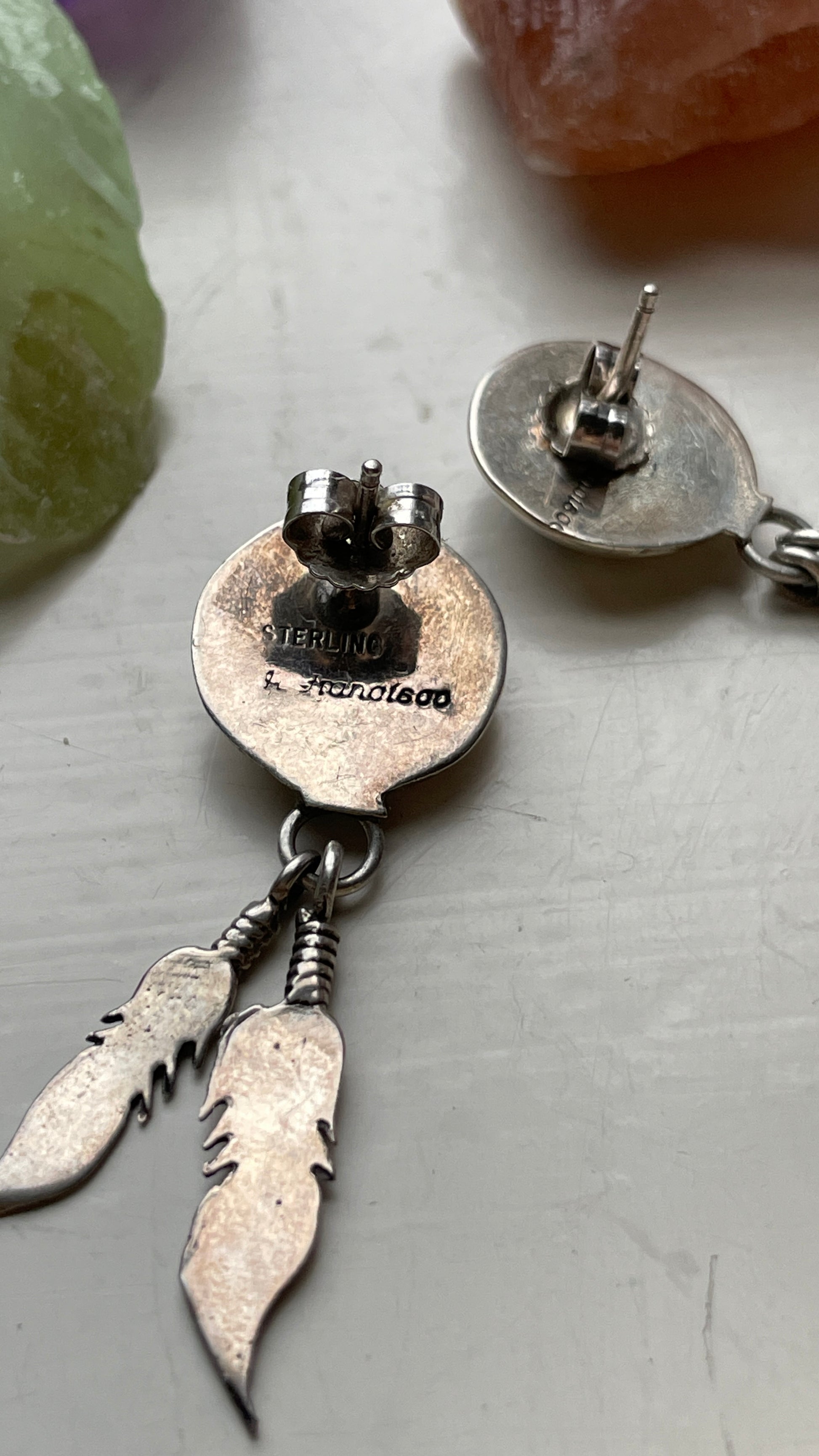 Beautiful sterling silver and turquoise Navajo earrings. Stamped sterling and makers mark.