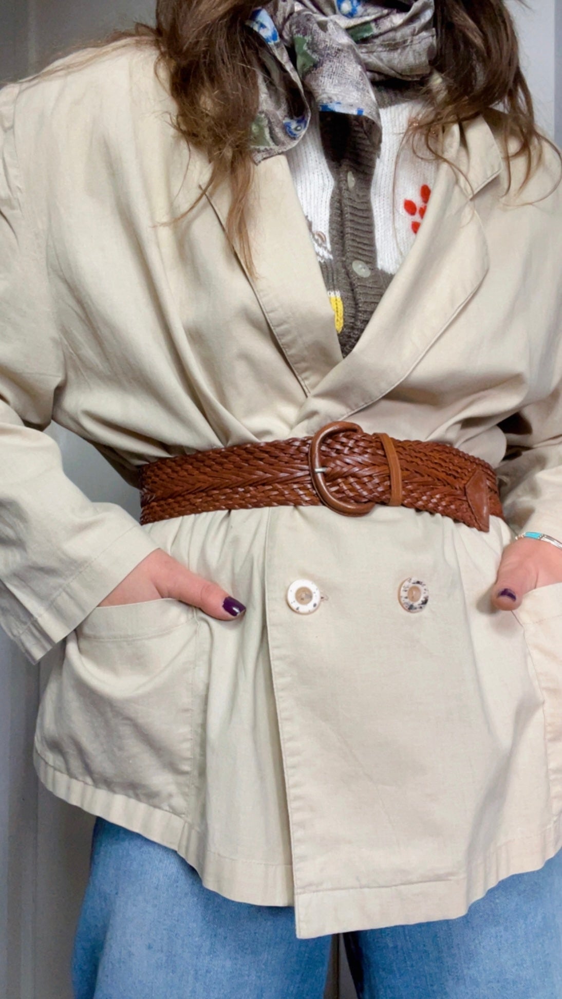Super cool boxy blazer in soft cotton. Great layering piece for the darker months and can easily transition to a light summer jacket. A true year round piece. It’s a rustic woven fabric that has tiny “imperfections” like you see in linen.