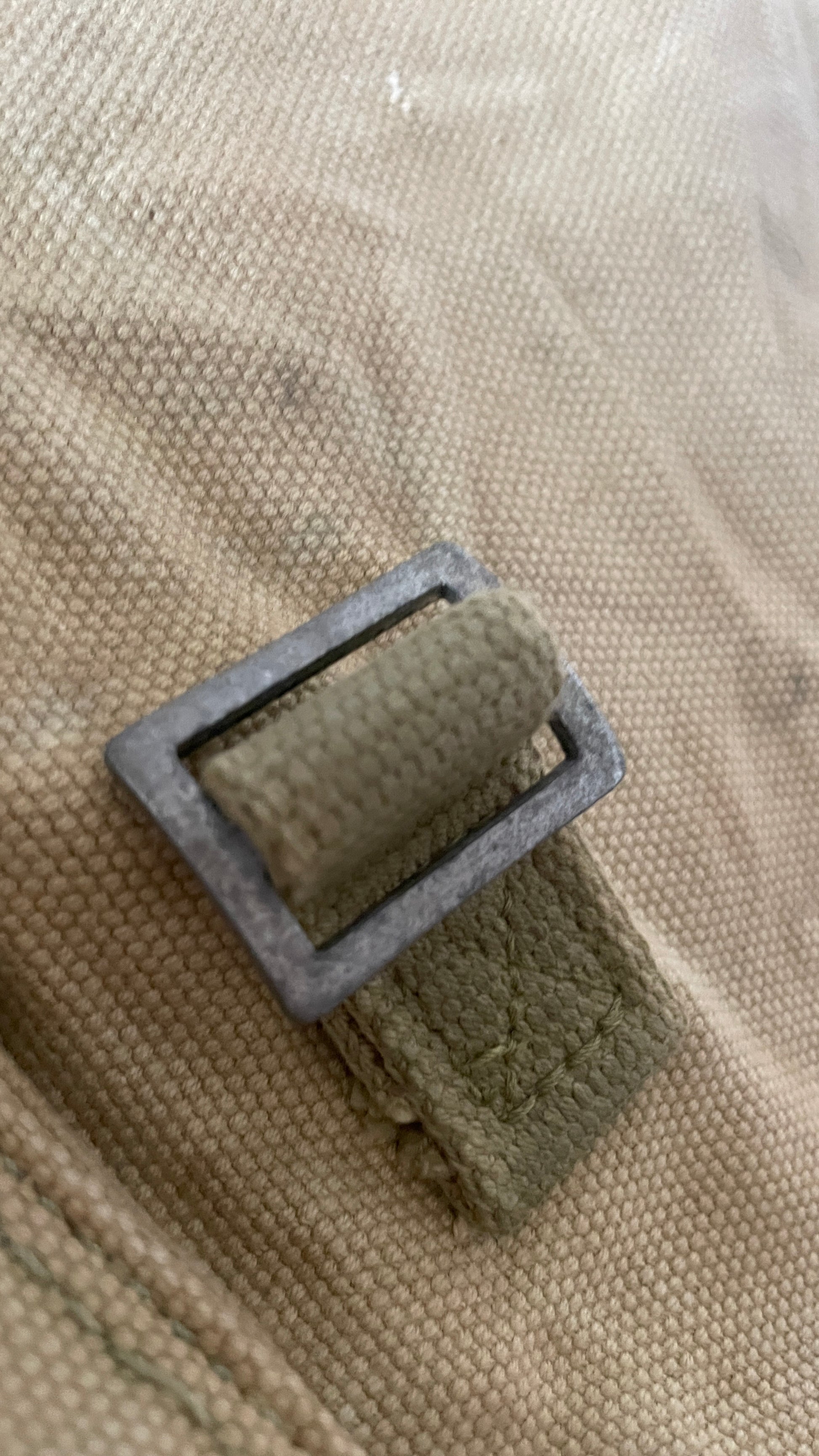Super cool canvas backpack. A 60s camper gear one that stands the test of time. Has just the right amount of “wear and tear” without hindering the functionality. Adjustable straps.