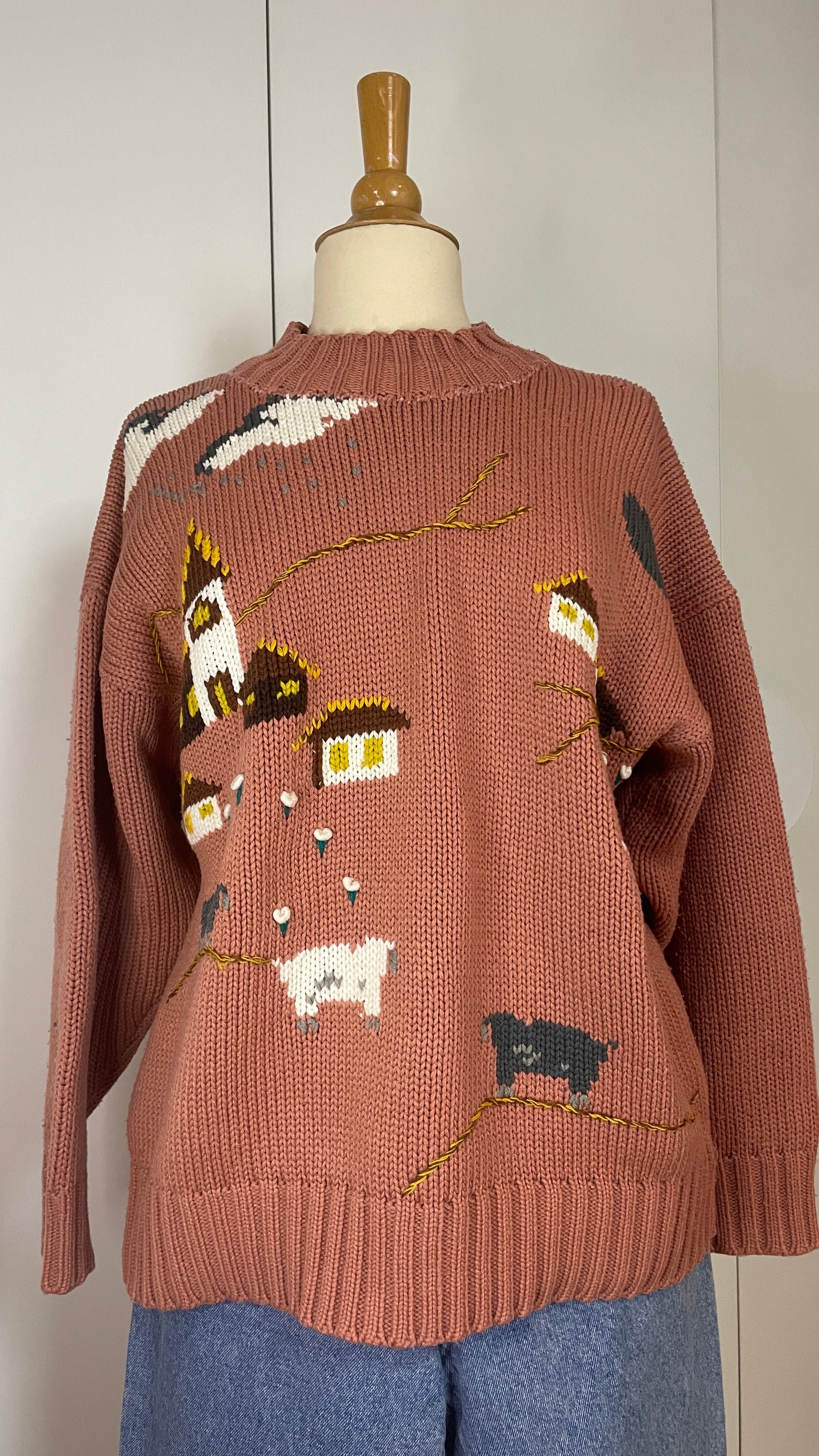 super cute blush pink jumper, embroidered in cottage core style. Lovely fit, round neck.