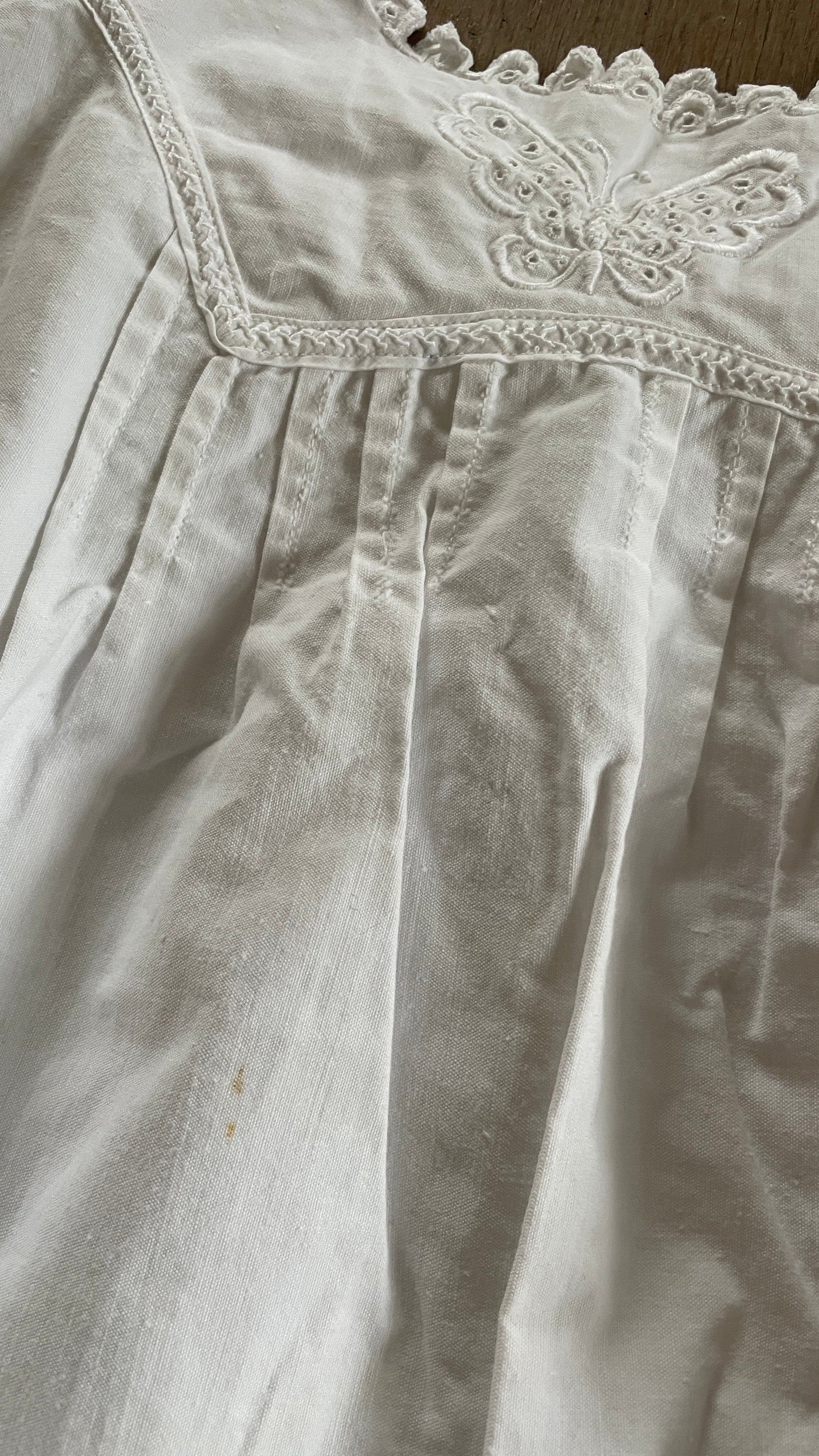 A beautiful French gown with butterfly and broderie anglaise details. A very cool and comfy fit. Although originally not a dress to be seen by many, I think this beauty deserves to see the light of day.
