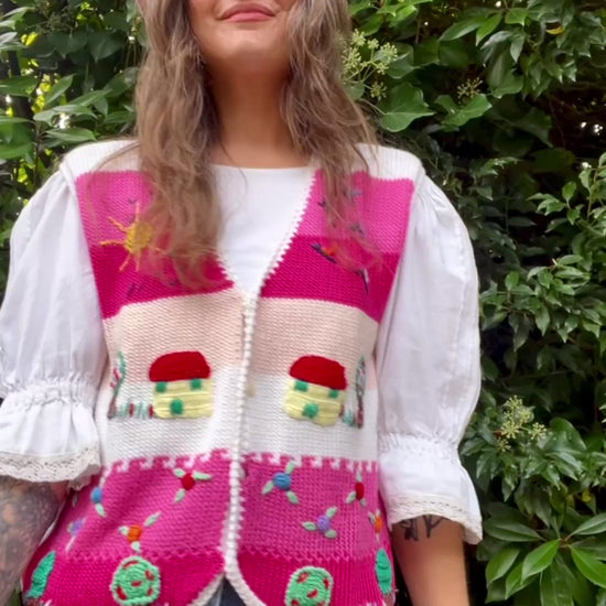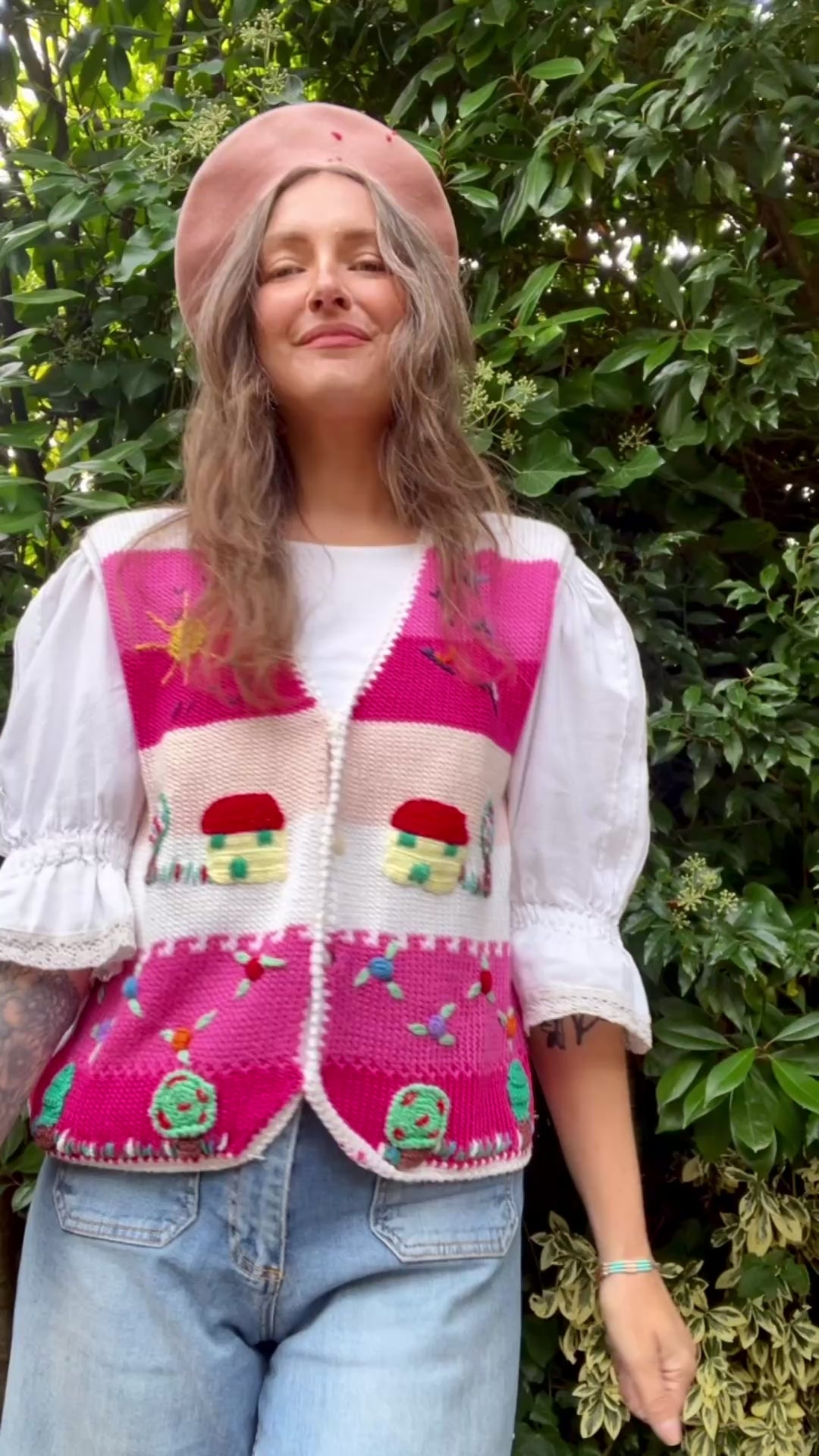 How cute is this? Such a lucky find! Hand knitted and embroidered. Perfect to layer or wear as is in warmer days.