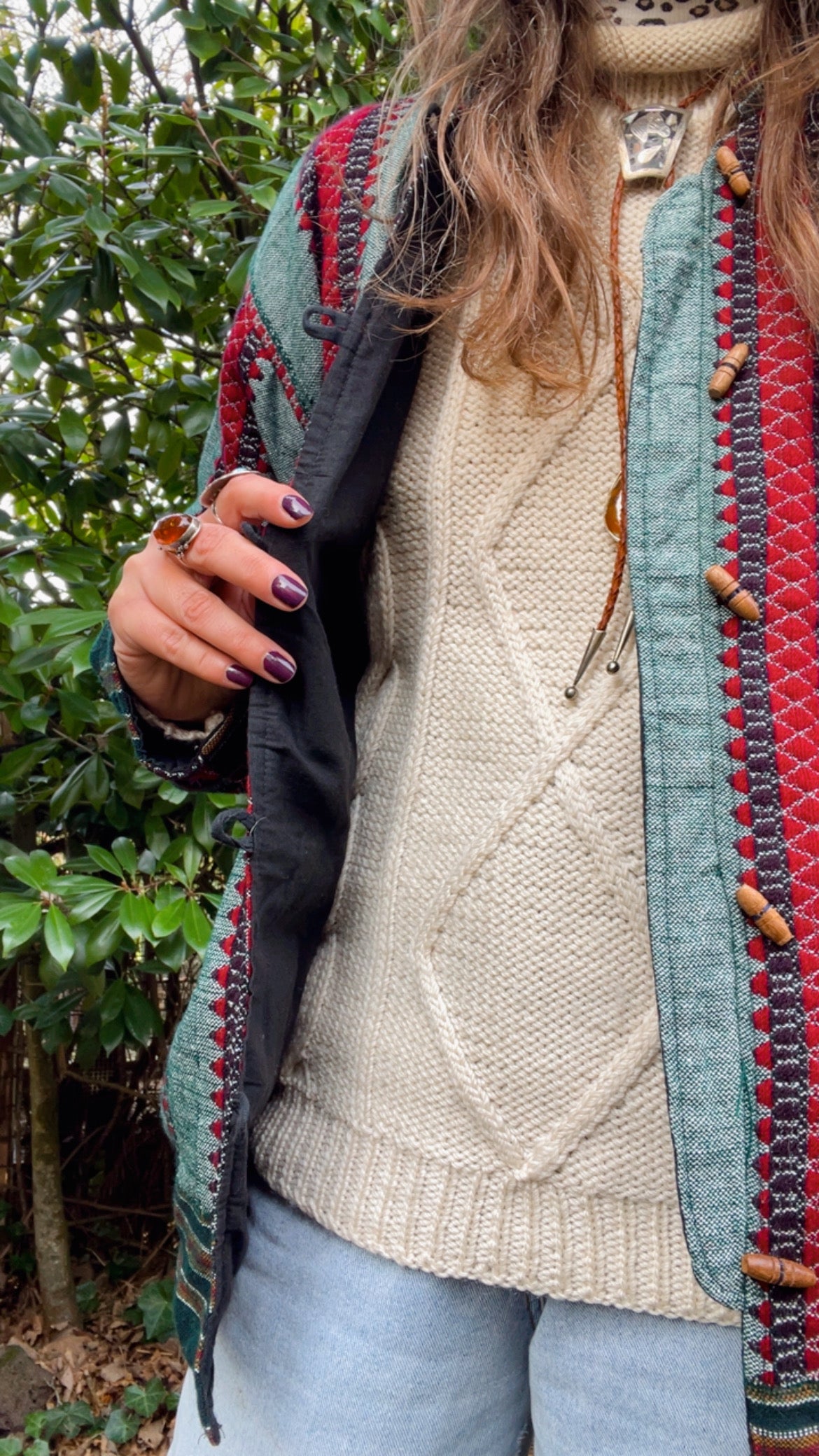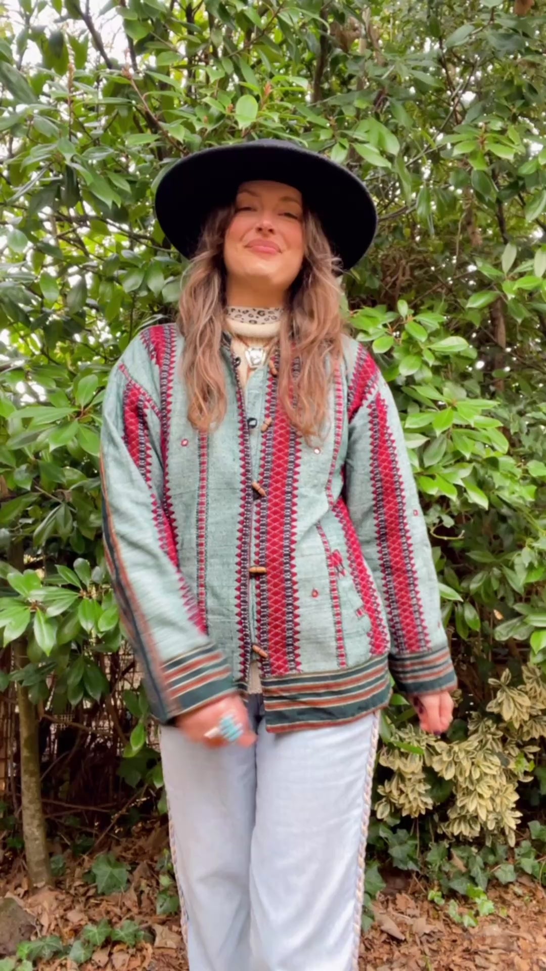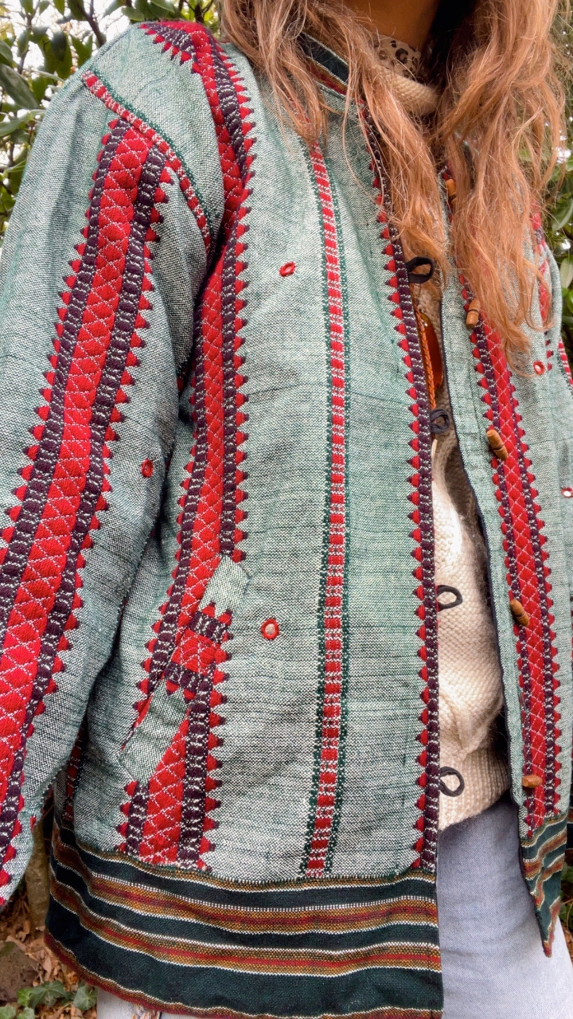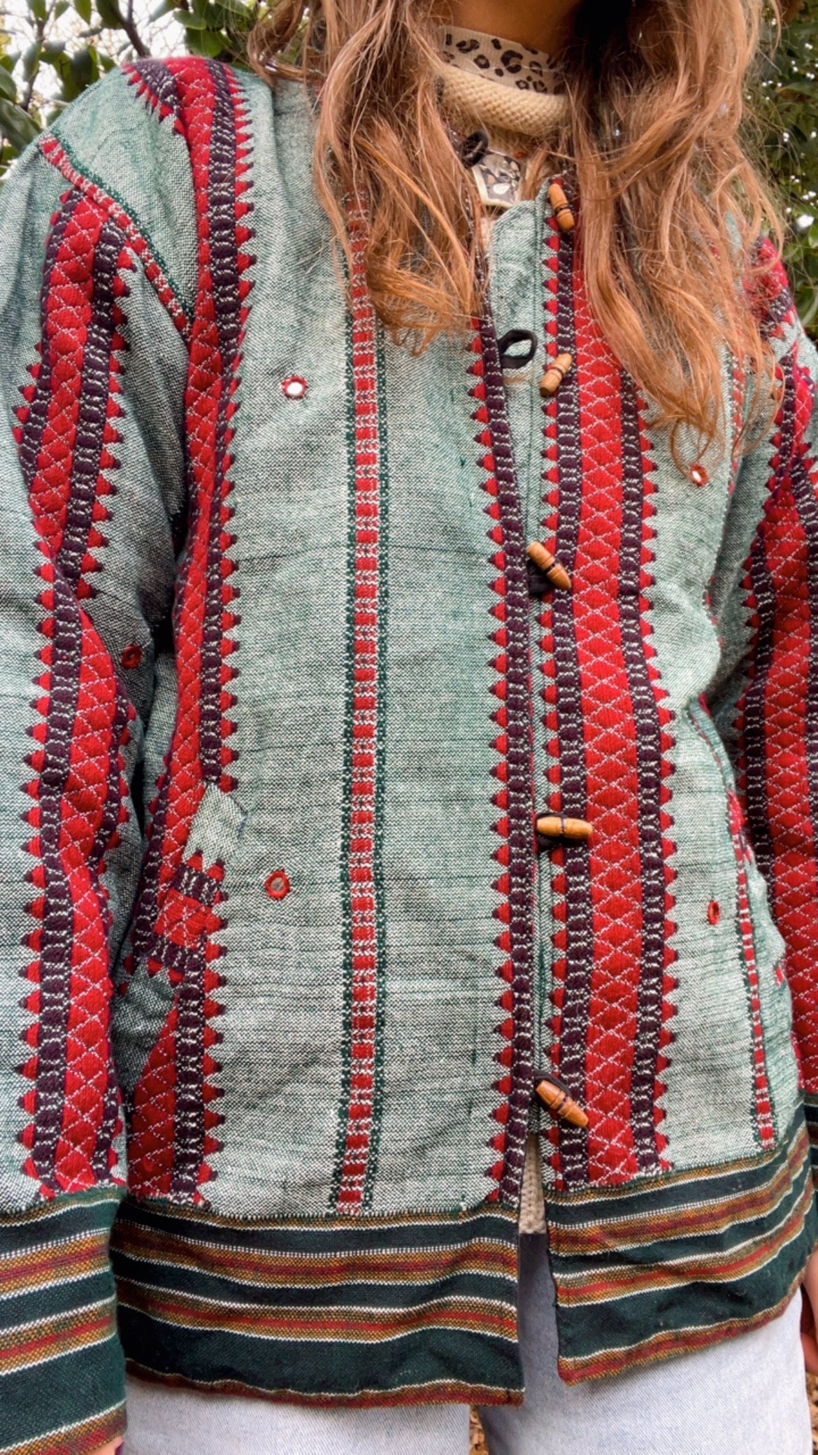Super cute light weight jacket, woven in a wool blend. Cotton lines and decorated with mirror foils.