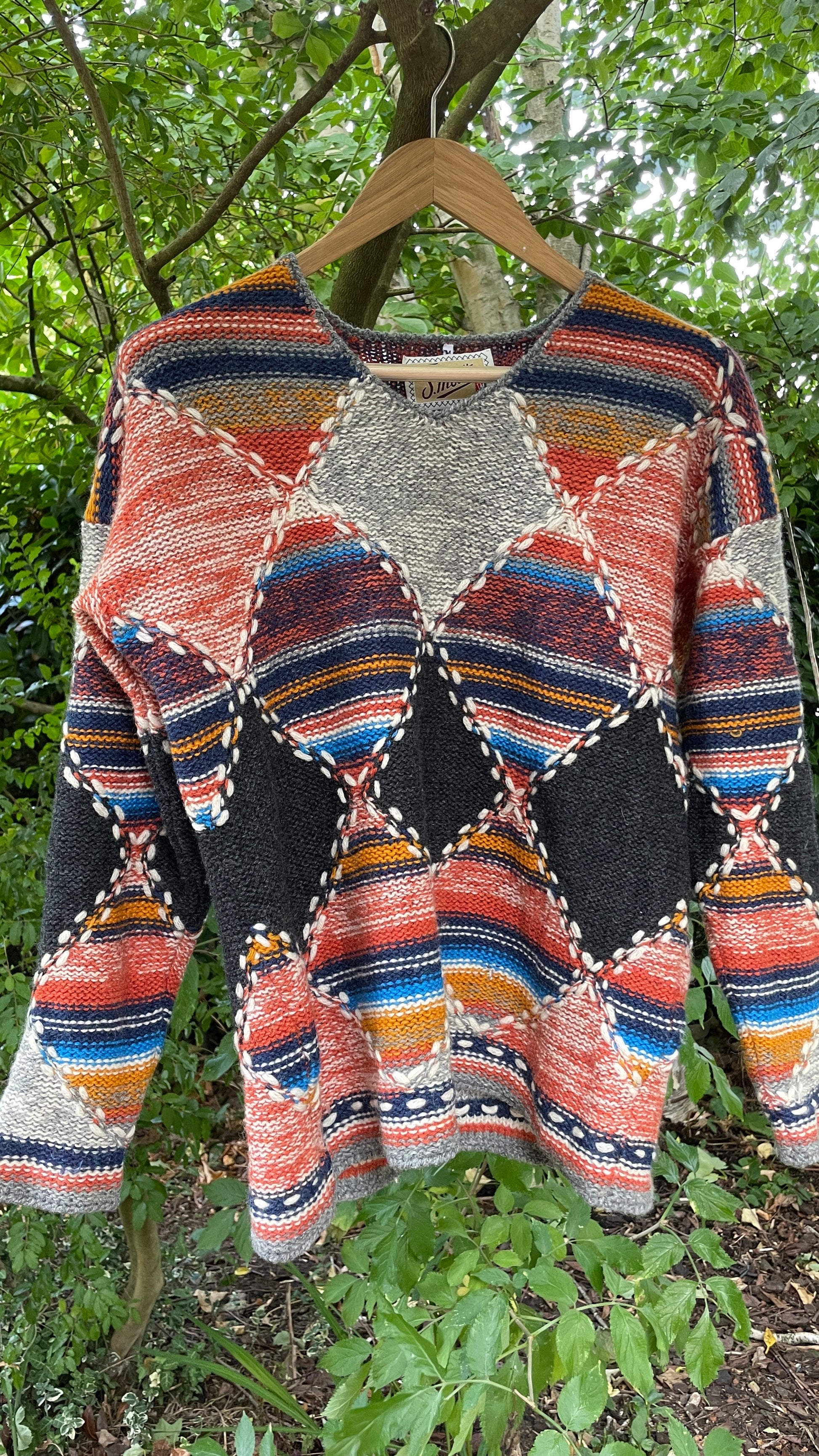 Super cool jumper made of Shetland wool. It’s a light knitted piece in diamond pattern. Timeless colors that work making with jeans!