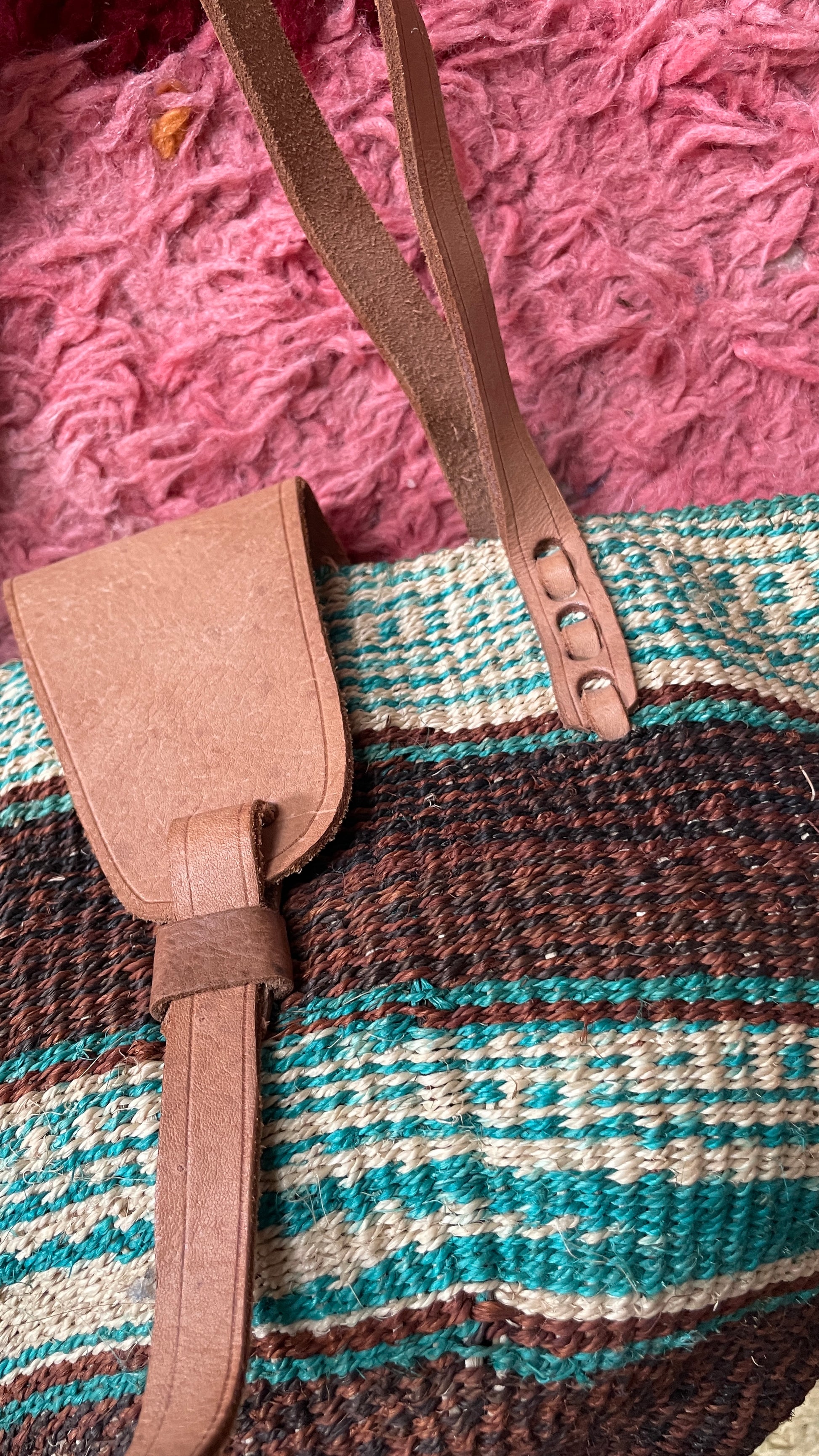 Super cool basket woven purse with leather straps. Handmade to perfection, a timeless design. Can be worn both cross body and on the shoulder. Straps are non adjustable.