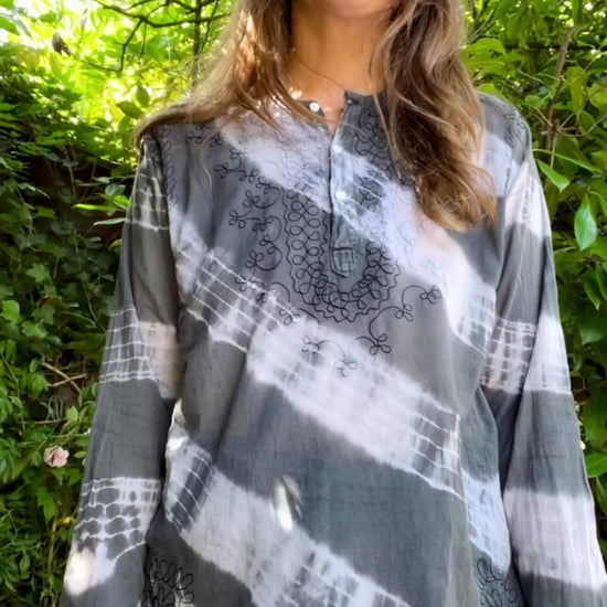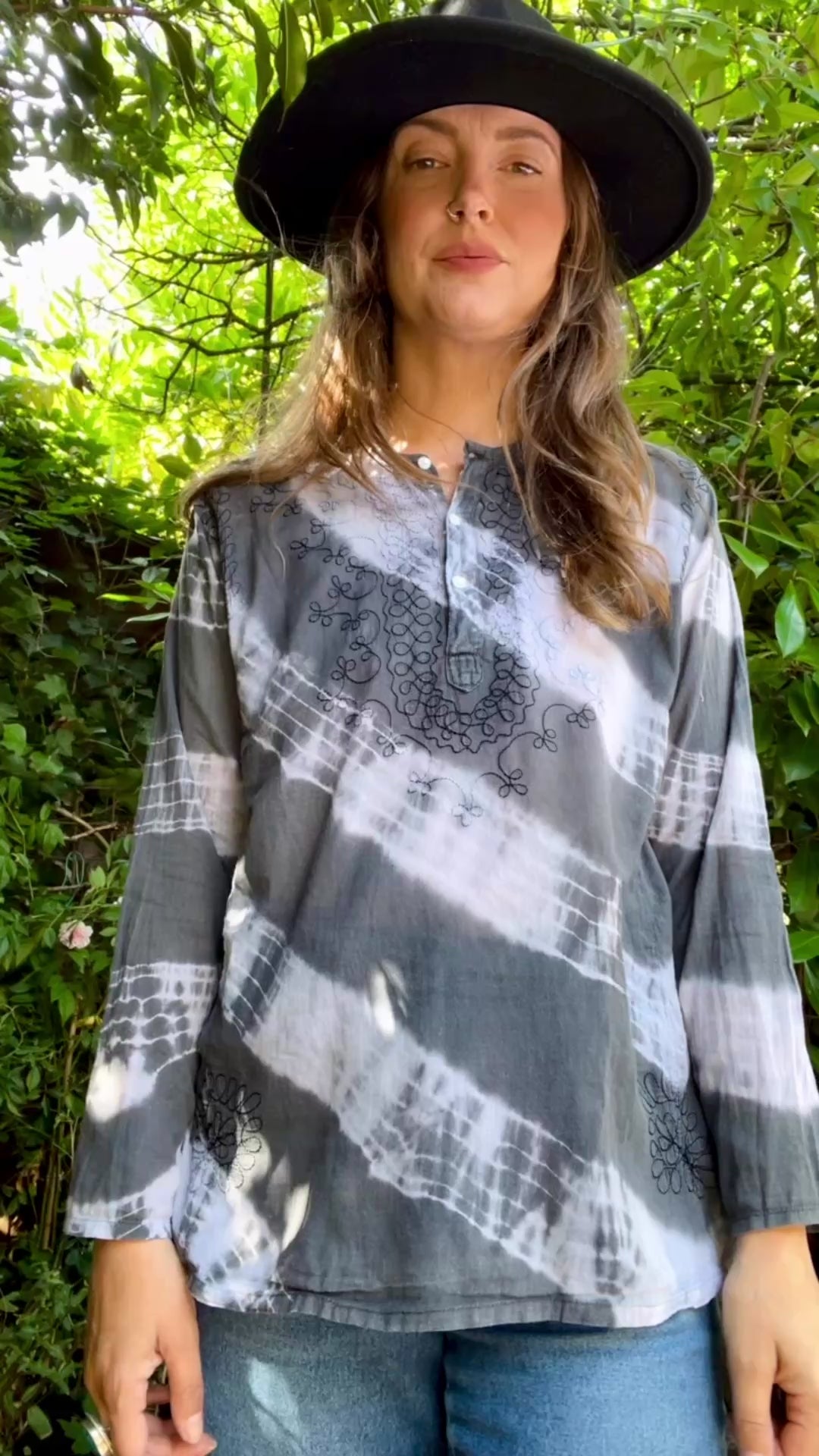 Very cute Y2K tie dye top with embroidery details. Soft and flowy fabric, little shell buttons and bottom slits on the side.